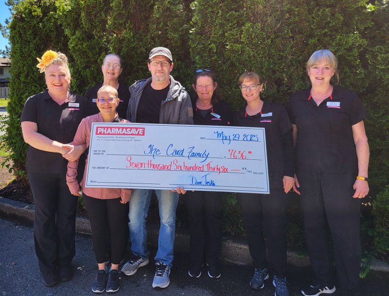 In response, the Pharmasave Broadmead team launched a fundraiser to offer meaningful support. Through a gift basket raffle (valued at $700) and the sale of Purdy’s chocolate bars, they raised an incredible $7,636 for the family.